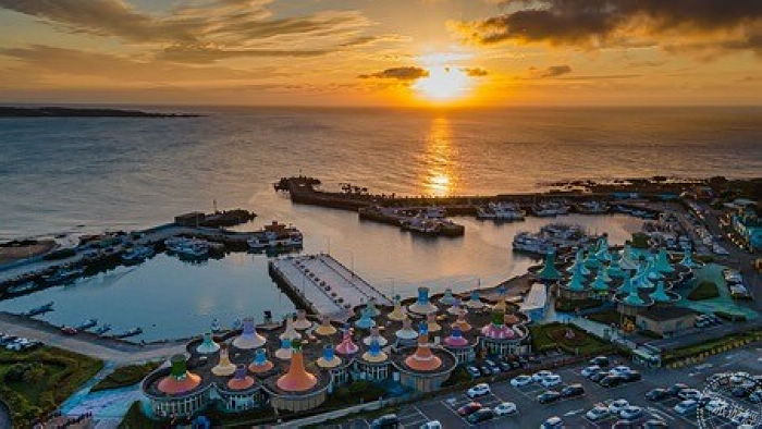 富基漁港墨西哥帽造型屋頂,入夜後光雕投射成的美景