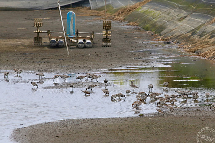 此次棲地營造行動至今已進行約三分之二的時間,除了大濱鷸,紅腹濱鷸、紅胸濱鷸的數量也很精彩,4月最後兩週,彎嘴濱鷸、黑尾鷸等水鳥也將陸續出現,為魚塭帶來不一樣的風貌。