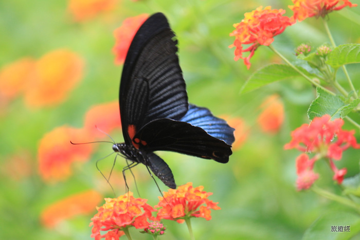 大鳳雄蝶正在馬櫻丹花朵上休息(圖\新北市農業局提供)
