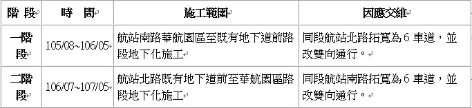 第二階段工程從106年7月起至107年5月,改由航站北路地下道至華航園區的路段封閉施工,車輛進出機場動線將轉換至維持雙向各3車道通行的航站南路行駛;影響用路工程結束後將恢復原本南進(由國道進入機場走航站南路)、北出(離開機場由航站北路進入國道)的交通動線。