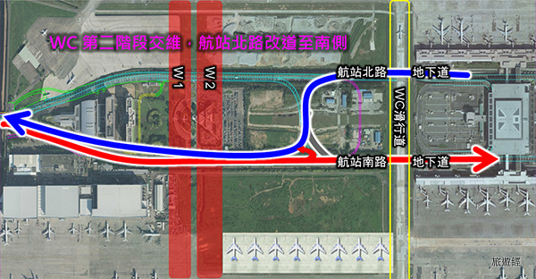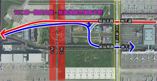 為興建第三航廈,將串連機場南、北跑道重要的WC滑行道,因應施工需要,從8月起將分階段陸續調整並做區段管制,工程自8月8日開始,預計於107年第四季完工。而施工期間,到桃園機場時可能都要面臨交通黑暗期的困擾,請用路人在施工期時,由國道高速公路開車進出機場時請注意交通動線,尤其在尖峰時刻,行車時間將增加,除了請旅客提早出發,更提醒駕駛人注意小心。