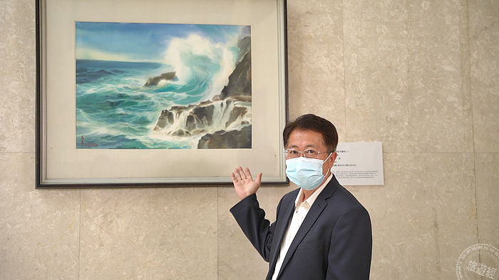 大墩文化中心主任陳文進化身金牌導覽員分享藝術家侯壽峰的作品《浪沖浪平幾時了》