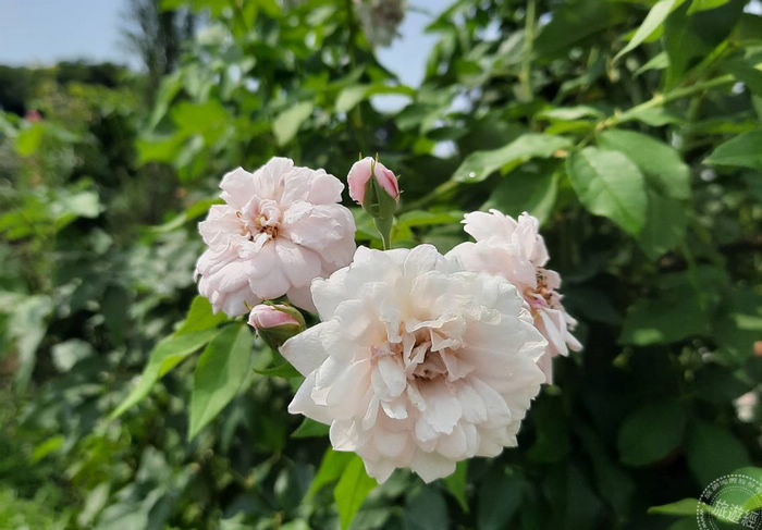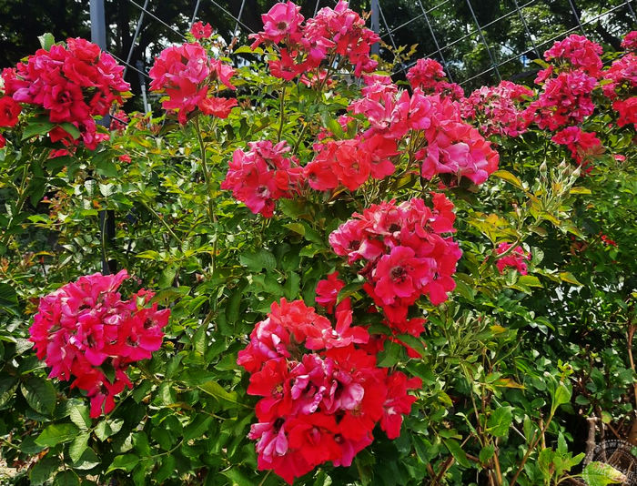 目前玫瑰園中,顯目火紅色的「琳達坎貝爾」,在炎熱的天氣下,植株依然生長茂密,一莖多花盛開畫面有如新娘捧花,為庭園美化的推薦品種。它的葉子和莖上有柔軟的細毛和特殊的紋路,但切勿用手去觸摸;具濃香的「努賽特」在1814年發表,是非常古老的玫瑰品種,白色花朵小巧精緻,開出的花朵就像一串串風鈴,綻放的盛況幾乎都要看不到枝葉了,由於花量驚人之特性,適合花壇、拱門、花牆造景使用;這裡還有清新怡人的玫瑰品種「櫻桃派」,也被稱為「摩洛哥公爵」,它的花朵極具辨識性,花瓣邊緣由粉至紅具有漸層感,會隨著季節呈現不同顏色變化,每株花色都不見得相似,它在2004年獲得世界玫瑰花展金牌獎項,之後也成為世界知名玫瑰品種。