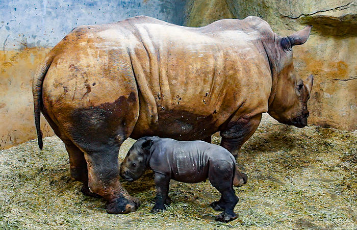 犀牛的懷孕期很長,約16–18個月,且每胎僅有一個寶寶,小犀牛出生時重量約為40–65公斤,要繁殖一隻犀牛寶寶並讓牠順利長大非常不容易。但由於犀牛角在亞洲號稱有療效,為了賺取暴利,非法盜獵者會捕殺犀牛拔取犀牛角,而沒有媽媽的犀牛寶寶,卻很難在野外生存。