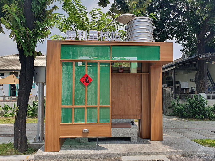屏東文化處表示,這兩座候車亭以台灣早期生活物件「菜櫥仔」、「老電視機」為發想,在不變動原有主結構前提下進行外觀包覆,將常民文化透過幽默童趣的風格呈現,其中「菜櫥仔」候車亭不僅擁有櫥仔的外觀,裡頭還可以看到過往阿嬤煮菜的料理罐,如:老一輩煮菜一定要用的味素,以及烹調用的油,及調味的辣椒等裝飾!藉由視覺上的誇飾效果,復刻眷村生活記憶,與勝利星村整體環境氛圍相呼應,為園區增添打卡拍照景點。