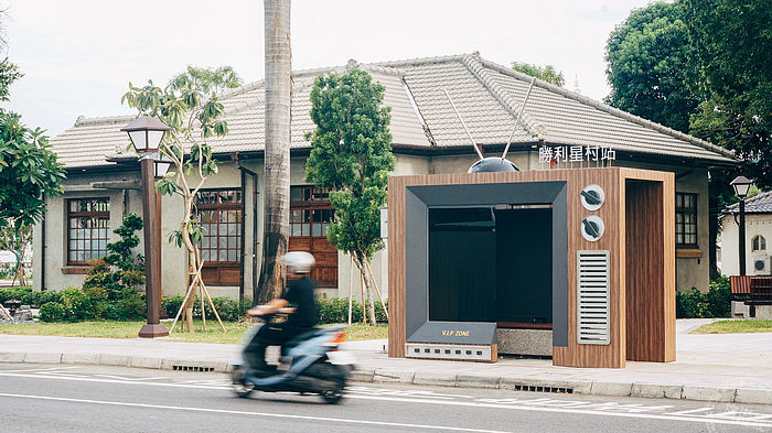 這是公車候車亭,勝利星村站「菜櫥仔」造型