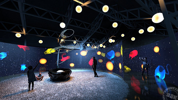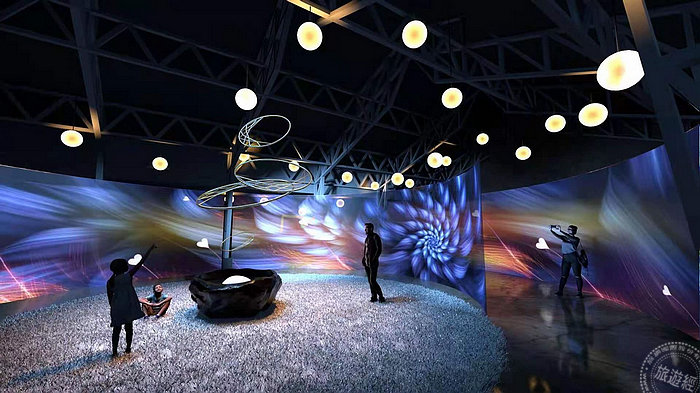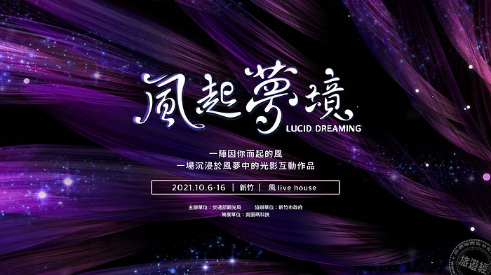 「風起夢境」係透過沉浸式投影與仿生技術,利用線條、粒子、空氣感等營造出風的形象,民眾隨著風的引導緩緩地跟著風聲直搗夢境核心,並可以肆意地與夢中元素進行互動,每當中心吹起微風,整個空間將幻化成一道新的夢境。
