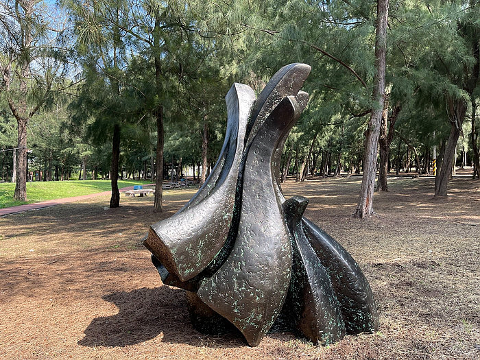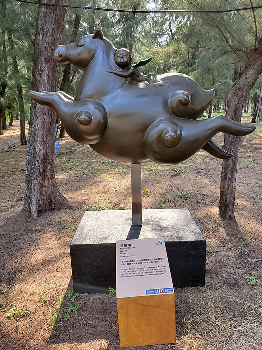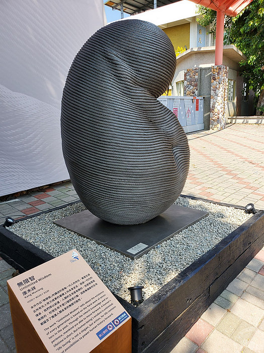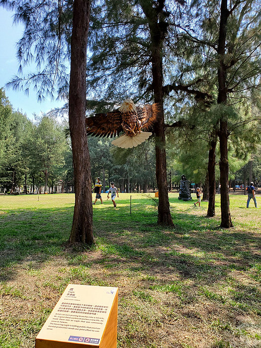 其中作品:《交流》,為王龍德老師的作品,以魚的豐收意象,燒成陶板鑲嵌在竹節鋼筋構成的鋼架上,組合成一件大型的戶外雕塑,訴說著豐收的記憶;《喝水的鶴(二)》為蔡建曉作品,描寫自然潟湖濕地中,怡然自得悠閒的鶴,為生態保育環境永續代言;《鷹》為李睿紘所作,用農民修剪果樹所裁剪下來的樹枝,透過藝術家的巧思及巧手,重新賦予新生命與意義,而鷹更是環境中保護的指標;《魚雁往返》為阿信‧沙華克作品,用廢棄的魚網與田收的廢棄塑膠及寶特瓶製作,融入個人風格及原住民圖案符號,傳達對海洋生態汙染與環境迫害所造成的隱憂,而人類也因食物鏈而受害;《大地之歌》為黃裕欽及徐靖雯共同創作,以香椿做木琴、用冷媒桶製鐘,把酒瓶拿來造風鈴,再用孟棕竹來變樂器,回收這些廢棄物賦予新生命,讓聲音直接深入人心所產生的感動。