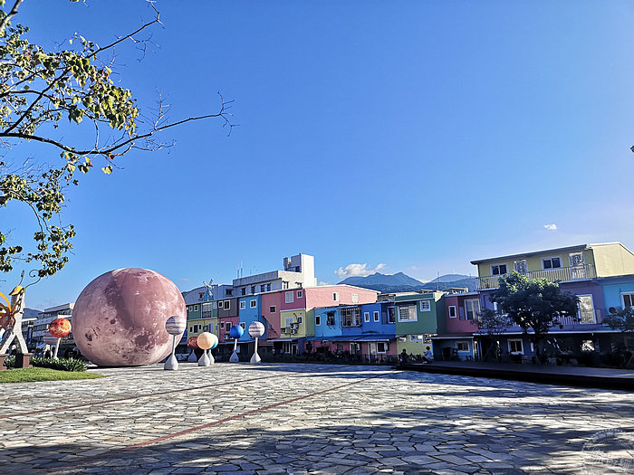 冬山火車站與台灣各地的火車站造型不同,站體設計以冬山舊名──「冬瓜山」來發想,配合台鐵宜蘭線高架化工程與生態綠舟的開發,目前火車站廣場於10/31前,設置了10米月球以及12小星球,每日於17:00—23:00點燈,加上一旁的彩色屋色,白天與夜色均有不同拍照的景,非常適合拍照打卡。