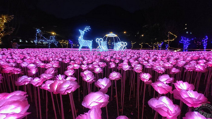 谷關燈區「心花朵朵開」萬朵玫瑰燈海營造幸福浪漫氛圍
