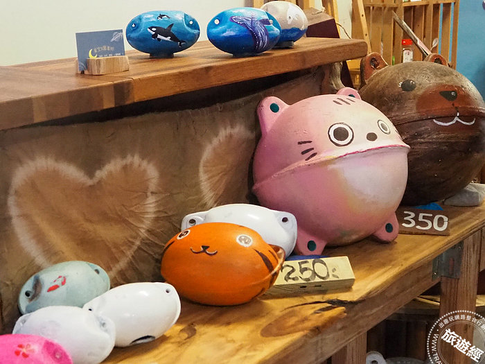 走進「星空X藝素村」,以衝浪板為意象的村落招牌映入眼簾,預告「這裡」充滿滿滿的海洋風情,一旁以浮球彩繪的藝術裝置可愛吸睛,呼應了「這裡」推廣的環保理念,村落內處處可見以海廢料打造的藝術裝置、有浮球撲滿、玻璃藝術、虎鯨畫作等,就連店鋪的照明燈都是利用浮球改造而成,處處充滿巧思,尤其村中那幅由168支回收玻璃瓶製作而成「座頭鯨」,與一幅利用海廢浮鏢、瓶蓋創作出的海豚母子裝置藝術等都相當吸睛!另外還有限定展覽──2021年貢寮‧共聊千歲術展,由一群長輩利用豆腐板、不要的衣服所製作的藝術創作,也相當有看法,活動至2月6日止。