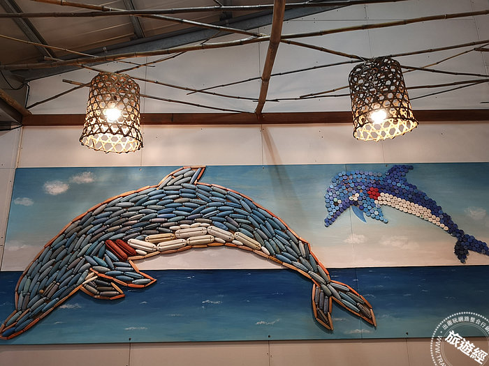 海廢浮鏢、瓶蓋創作出的海豚母子裝置藝術(攝影:洪書瑱)