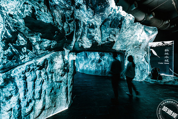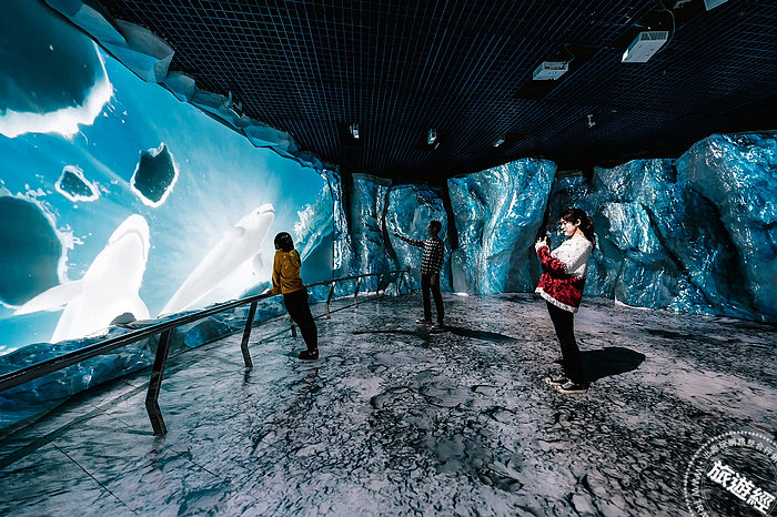 「北極」與「南極區」利用展區中的冰岩場景結合沉浸式環景互動投影,打造沉浸式劇場、沉浸式互動體驗、觸控互動牆等多元展示,民眾將可見到各式陸地與水中的南北極生物,包含極地霸主北極熊腳印以及俏皮探出頭的南極企鵝,透過聲光視覺效果,猶如置身南北極之中。