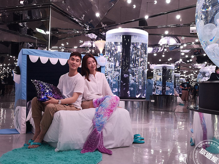 【Blu Night宿海奇遇】【癒見水母】眠區,還提供美人魚尾巴道具供入宿民眾拍照(攝影:洪書瑱)