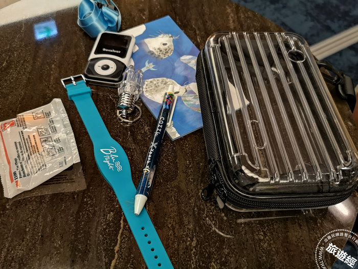 旅客Check-in後為提供Blu Night宿海奇遇的賓客專屬禮遇,包括專屬感應手環及探險包,從飯店3樓的SEAcret Tunnel祕密通道便可直接進入Xpark內,專屬感應手環還囊括了開關個人置物櫃與進入專屬通道等多樣功能。