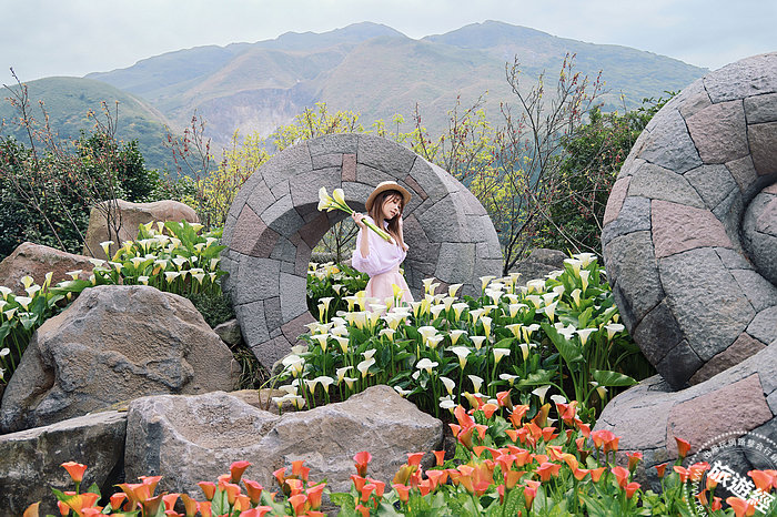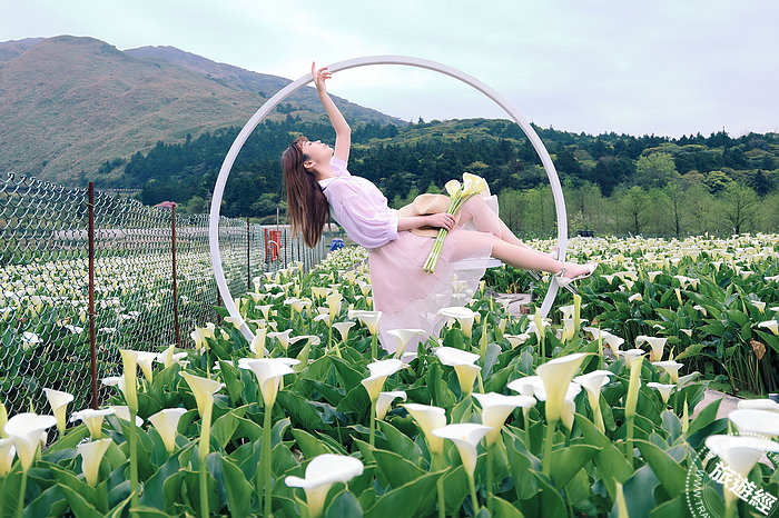 財福海芋田的時鐘,坐在時分針上,彷彿漂浮在海芋花上,意境更佳浪漫。