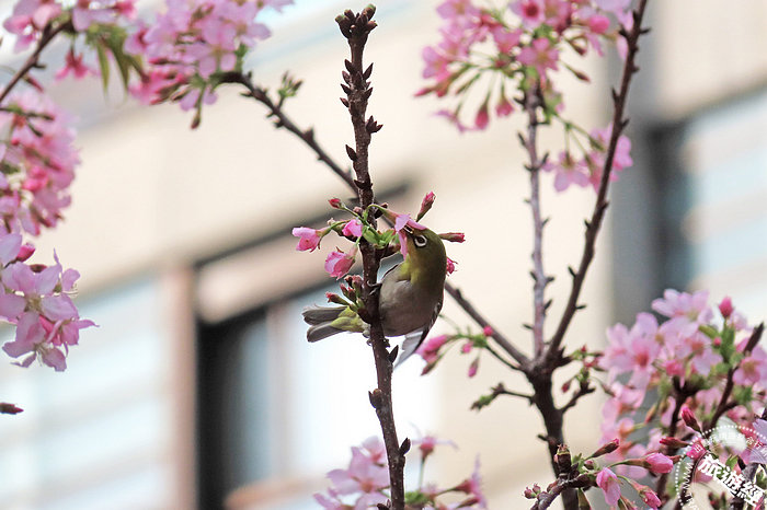 綠繡眼吸吮富士櫻花蜜