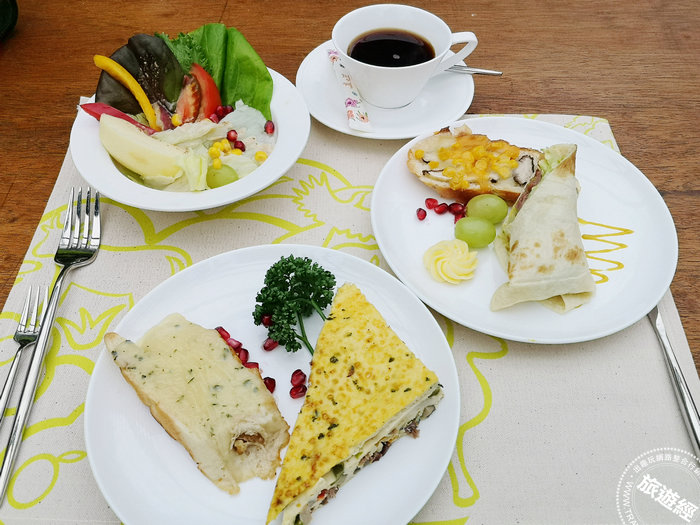 頭城農場早餐,以鴨掌、金棗等來製作捲餅、麵包,搭配歐姆蛋和水果沙拉等(攝影:洪書瑱)