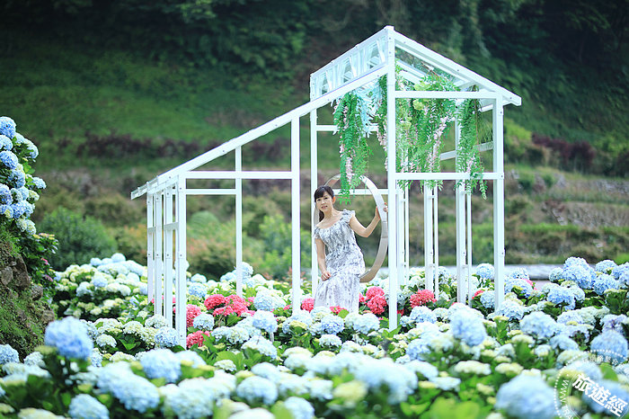 今年竹子湖繡球花地景花藝設計展以「純彩色浪漫風格」為主軸,農友利用竹子湖公共空間及自家農園的小角落,營造各式浪漫的時尚風格。其中,大梯田生態花卉農園以「白色花房」為主景,環繞在淡藍色繡球花田中,花房中有一座圓形鞦韆座椅,營造浪漫氛圍,完成度高且可多角度拍攝,贏得評審一致青睞,獲得冠軍。