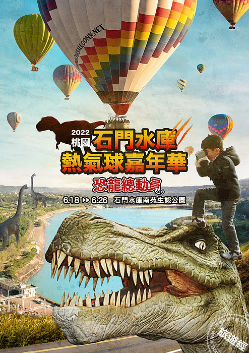 桃園石門水庫熱氣球嘉年華去(2021)年因疫情停辦一天,今(2022)年將於6月18日清晨熱鬧開幕,一連九天,直至6月26日止,其中最受矚目的造型熱氣球,因今年活動主題為「恐龍」,將有首次在台亮相,包括:來自「英國暴龍」與「巴西劍龍」的恐龍造型熱氣球,於石門水庫南苑生態公園立球迎賓,活動期間除了2顆恐龍造型球外,將有3顆繫留球,供遊客升空繫留體驗,活動期間每日都有熱氣球升空體驗、假日夜間光雕噴火秀。