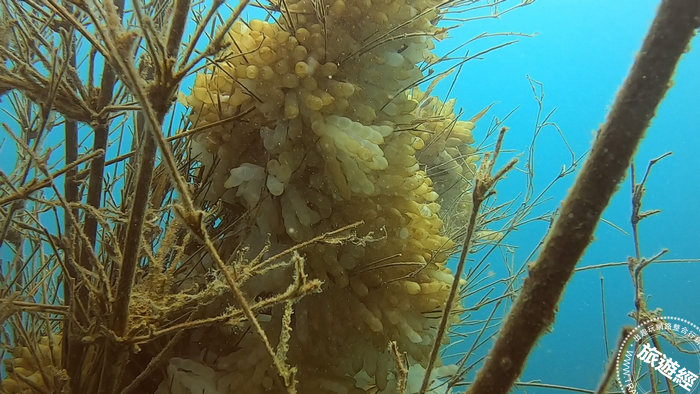 軟絲交配後,便把卵產在竹叢上,竹叢上「結實累累」,結付許多軟絲卵