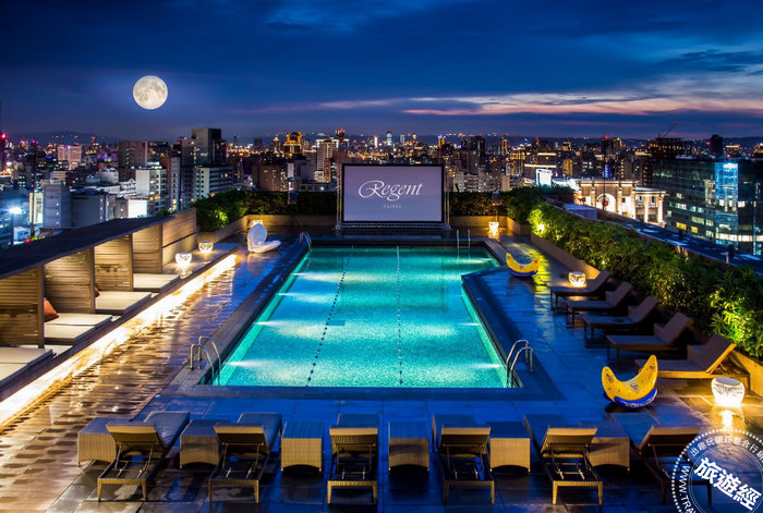 位於露天泳池畔旁、全台北市五星級飯店唯一的「城市星空電影院」,每日晚間會播映娛樂性十足的好萊塢大片