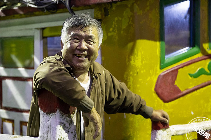 自稱「海牛」的72歲郭忠船長,灰髮夾雜白髮笑容滿面