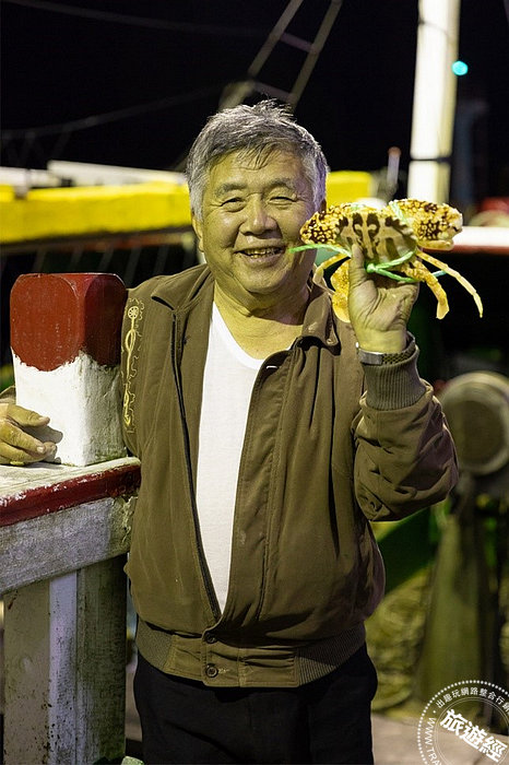 郭忠船長手持花蟹笑著看鏡頭