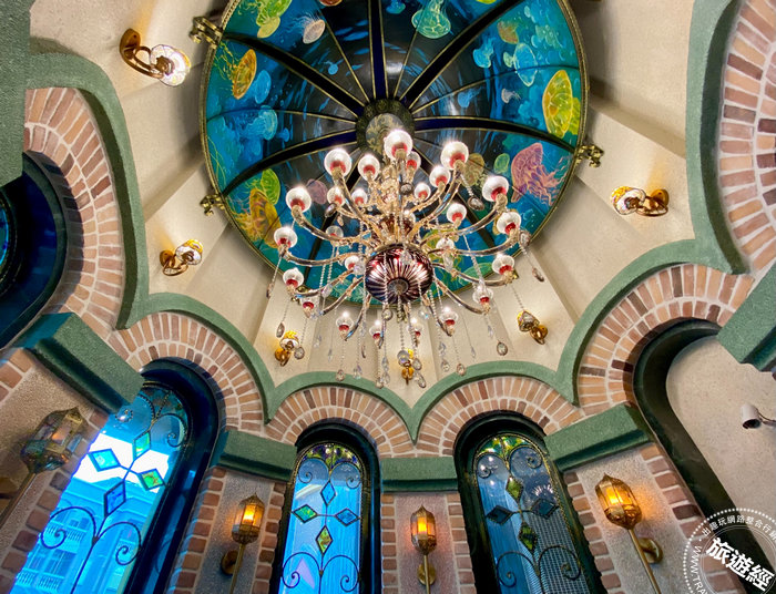 旅店的大廳、餐廳和各樓層通道,大量運用穹頂、彩繪玻璃裝飾。(攝影:曹憶雯)