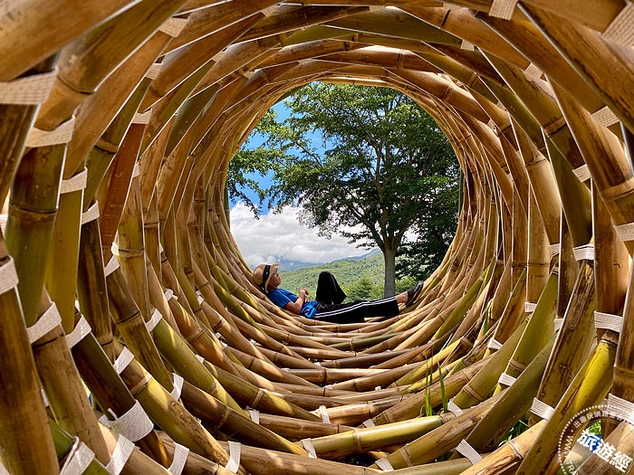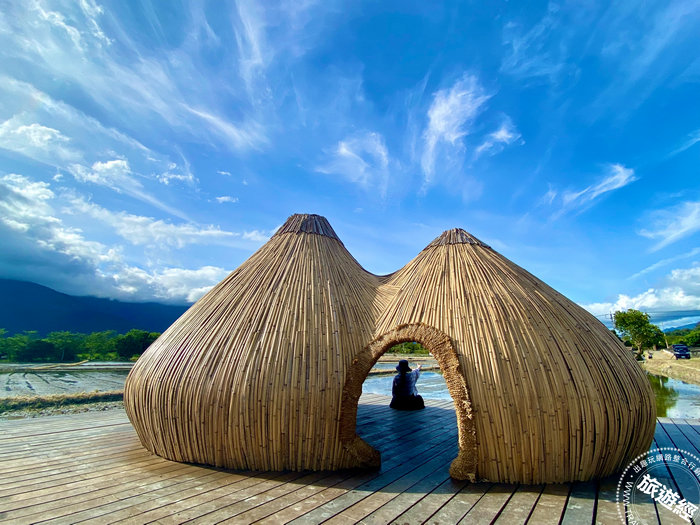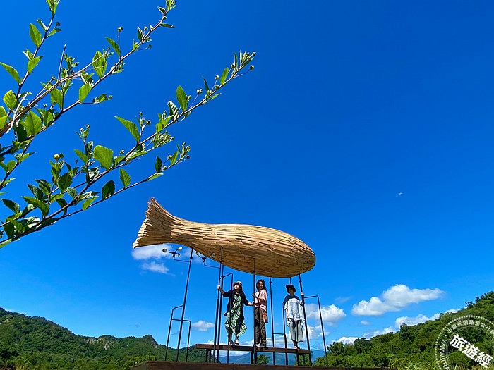 來自台灣劇場界的藝術家李維睦,受邀創作的《在一朵像魚的雲下看風景》,像一片雲飄來,帶來雨水滋潤縱谷鹿野台地;像一條魚的雲飄來,祈禱大地豐收年年有餘,旅人可以自由坐躺享受微風吹拂。