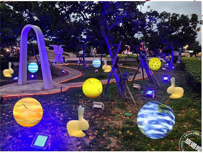 LOVE廣場配合中秋節設置宇宙與玉兔的夜間景緻燈飾