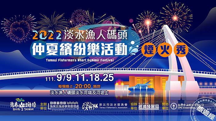 新北市漁業處表示,今年暑假自7月22日起安排了2個月在淡水漁人碼頭辦理仲夏繽紛樂一系列精采活動,除了水舞秀搭配情人橋光雕秀,還有璀璨煙火秀。民眾可多利用大眾運輸搭乘淡海輕軌或是公車26來漁港走走,吃海鮮、看夕陽、賞煙花觀水舞、打卡拍美照。