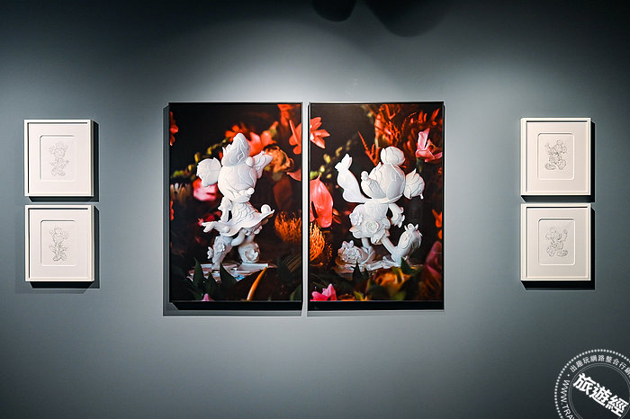 台灣裔美國畫家「 James Jean 」《 米妮 ( 正面 ) 》、《 米妮 ( 背面 ) 》、《 米奇・伊甸園 》、《 米妮・伊甸園 》。圖/INCEPTION 啟藝 提供
