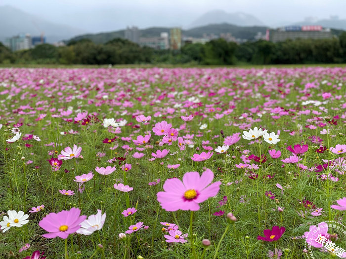 數大便是美,關渡花海已登場,台北市承德路7段401巷八仙抽水站附近,展現一場秋天微醺浪漫氛圍,這裡有繽紛多彩的波斯菊組成的花海美景,將至11月20日止,民眾不妨一起來「花」現幸福,另外,花海期間,於11/12(六) 15:00-16:00有折氣球表演;11/13(日) 15:00-16:00有音樂演出。