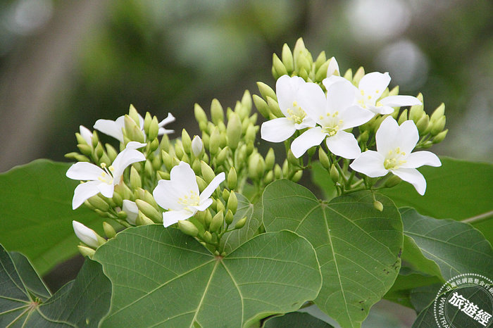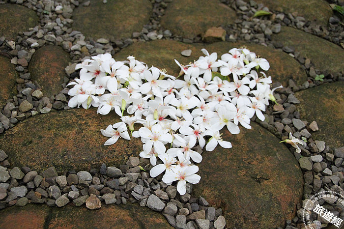 桐花環繞在苗栗山頭,點綴蓊鬱山林的油桐花,白色的花瓣翩翩如花雨般落下,猶如紛飛的白雪,靜悄悄的覆蓋上山間小路的美景,三義木雕博物館館前可遠眺遠處桐花染白的關刀山山頭,後方通往慈濟茶園的「四月雪小徑」,步道朵朵白雪飄飄撒落,山徑的高處一片綠油油的茶園,美不勝收。