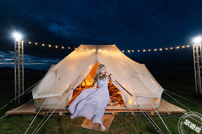 風格帳篷區夜晚點亮燈串充滿愜意浪漫的氛圍。