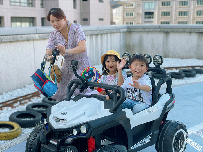 家長使用GoPro記錄孩子在奇趣操場開飆風電動車的開心笑容。