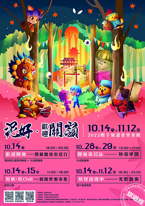 10月28-29日,從下午1點至5點在大成殿,將以關子嶺在地文化與素材為題,將和風文化、在地傳說、傳統文史、美食風土等題材,以符號學、藥水學、占卜學、魔法課、體育課、歷史課,讓民眾可以互動體驗。
